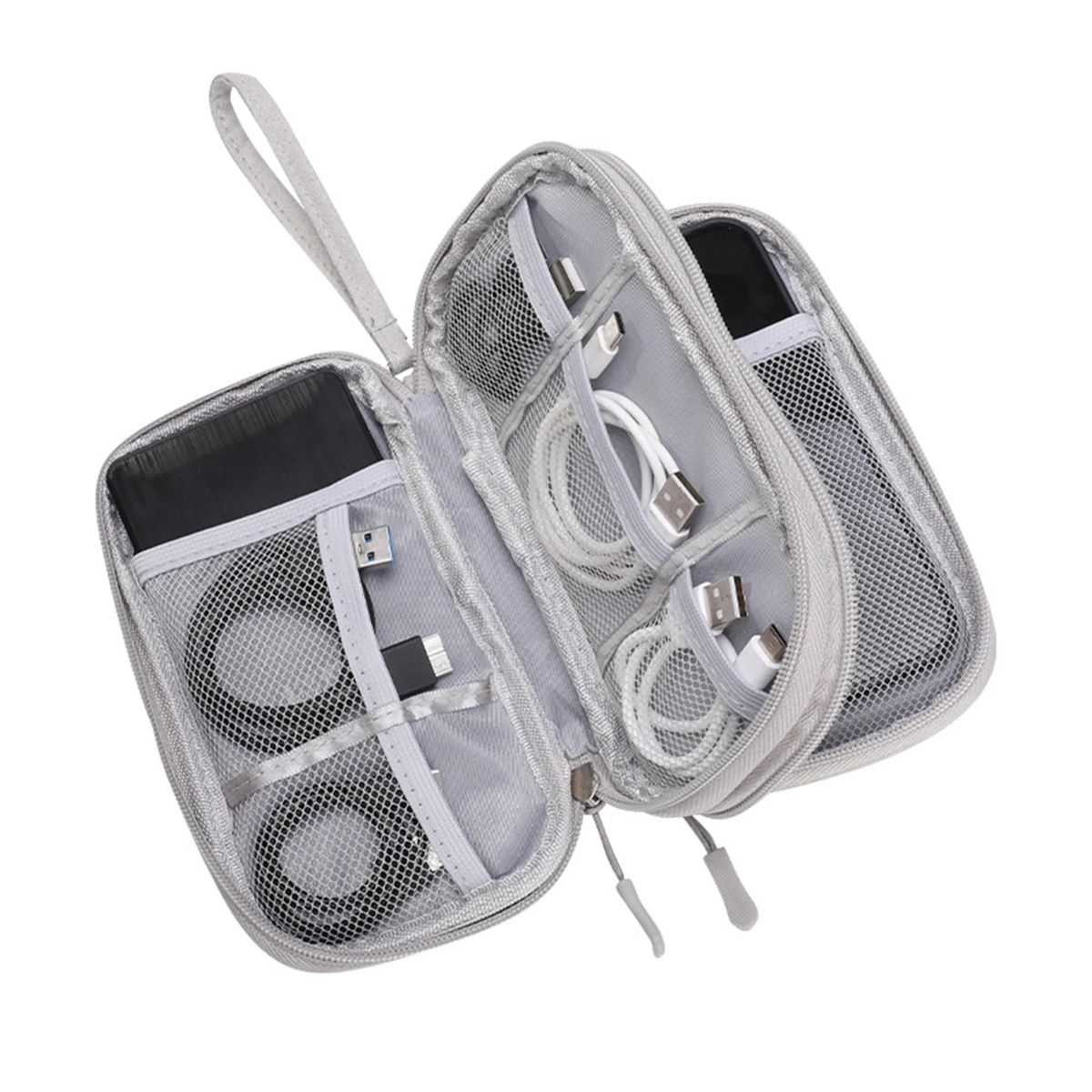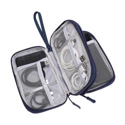 This multi-functional digital storage pouch is crafted from durable, water-resistant polyester fabric, providing long-lasting protection for your cables, chargers, USB drives, and small electronic devices. Its compact yet spacious design features multiple functional pockets and elastic straps, making it ideal for travel, office use, and daily life. Perfect as corporate gifts or personal tech organizers, this storage bag supports custom logo printing. Dimensions: 7.48"L X 4.33"W X 1.97"H. Feel free to inquire for more details.